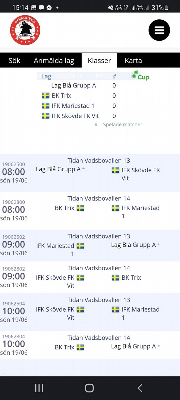 IFK mariestad 1/blå -Första match 08:00. TIDAN