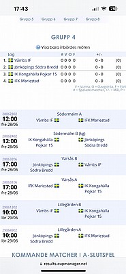Nästa match är kl 17:00 i Värsås, då kan jag skjutsa 4 spelare och Tomas 3 st.